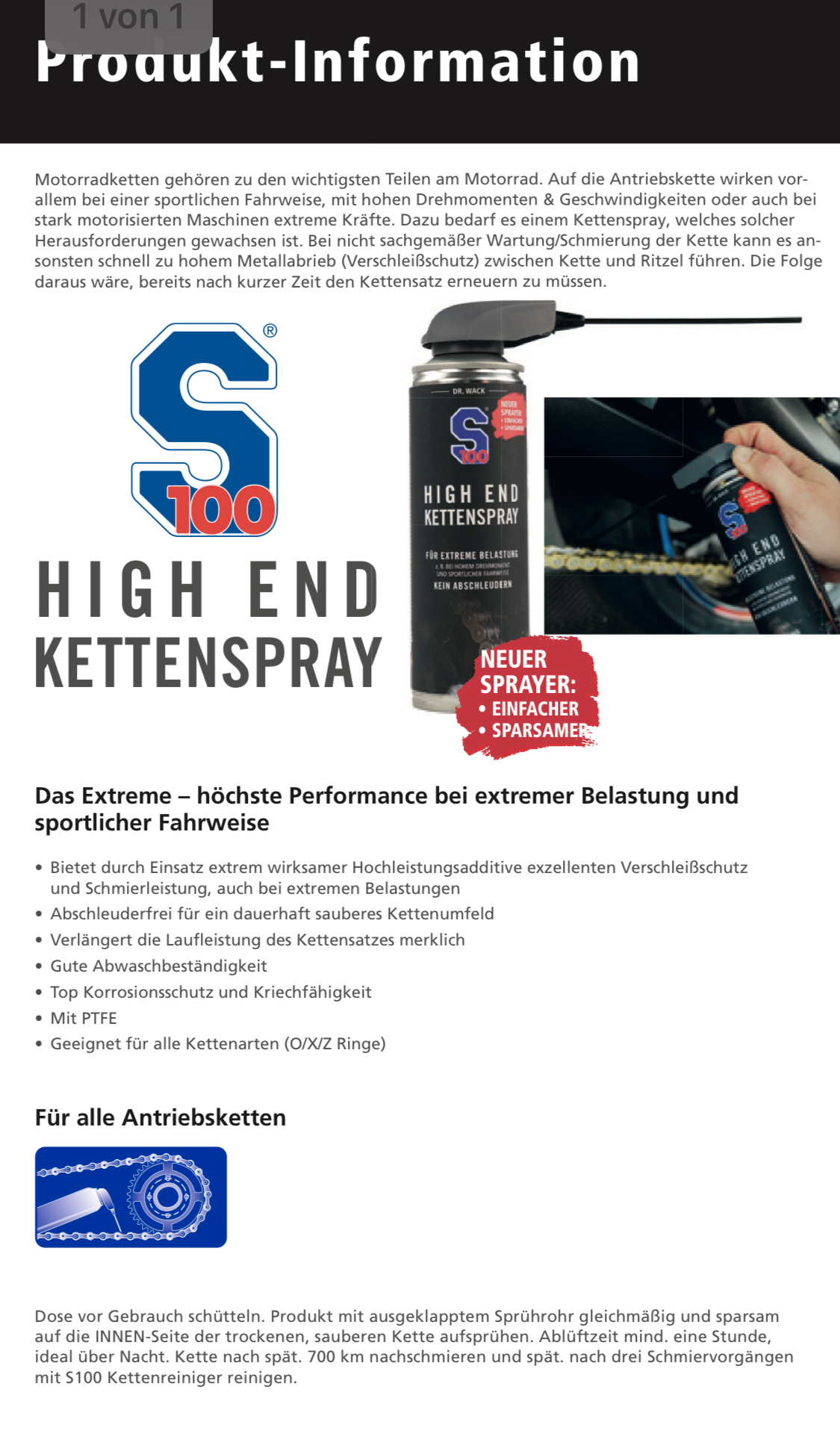 Steht doch mit dabei … 🙄 Eben, Rennbetrieb. Funzt einwandfrei und besser, als die anderen Spays. Glaub man kann hier getrost sagen, dass so ein Spay für den Strasenfahrer fast genauso sinnlos ist, wie sich als solcher, Motul 300V in den Motor zu schütten.- 97 replies