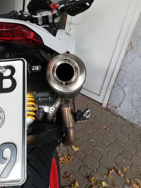 Hallo zusammen, Der ein oder andere wird sich daran erinnern, dass ich mit dem Sound meines Exans X-GP nicht hundertprozentig zufrieden war, da er leider leiser als der original Topf der 939 ist (zumindest im Stand). Ich habe also selbst einen Killer mit mehr Durchlass gebastelt und habe es wohl etwas übertrieben mit 40, statt 31mm innendurchmesser... Zudem sah man recht deutlich, dass gebastelt wurde. Da das Verlangen nach etwas mehr klang nicht aufhörte, habe ich mich auf die Suche gemacht und bin bei db-hunter.de gelandet, dort werden Sonderanfertigungen angeboten. Nach der ersten Email wurde mir eine Zeichnung geschickt, die ich bemaßen sollte. 69€ plus 5€ Versand fand ich angemessen und habe bestellt. Eineinhalb Wochen später (heute) war der Killer da. Verarbeitung ist Top und der Killer passt besser als original. Ich habe mich für einen Innendurchmesser von 37mm entschieden und den Killer 2cm kürzer bauen lassen. Der Sound ist endlich wie ich ihn haben wollte schön bassig und dumpf, aber nicht zu laut. Da ich natürlich nicht ganz beurteilen kann ob es jetzt zu laut ist, habe ich keine Kosten und Mühen gescheut und mir auf Amazon ein Präzisions Messgerät für 15€ geleistet? Im Stand bei halber Nenndrehzahl, habe ich 95,9db gemessen bei Vollgas 100,4db. Also alles im grünen Bereich, wie es mit dem Fahrgeräusch ist kann ich noch nicht sagen, da das Messverfahren doch etwas kompliziert ist. An alle die jetzt sagen ihnen ist ihr auspuff zu laut ect. Ihr könnt euch auch einen killer mit weniger Durchlass bauen lassen ?♂️ Hier ein paar Bilder: @Zaudibei Gelegenheit können wir deinen Remus auch mal messen, wenn du Lust hast.