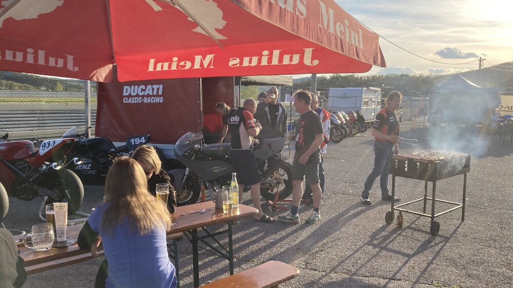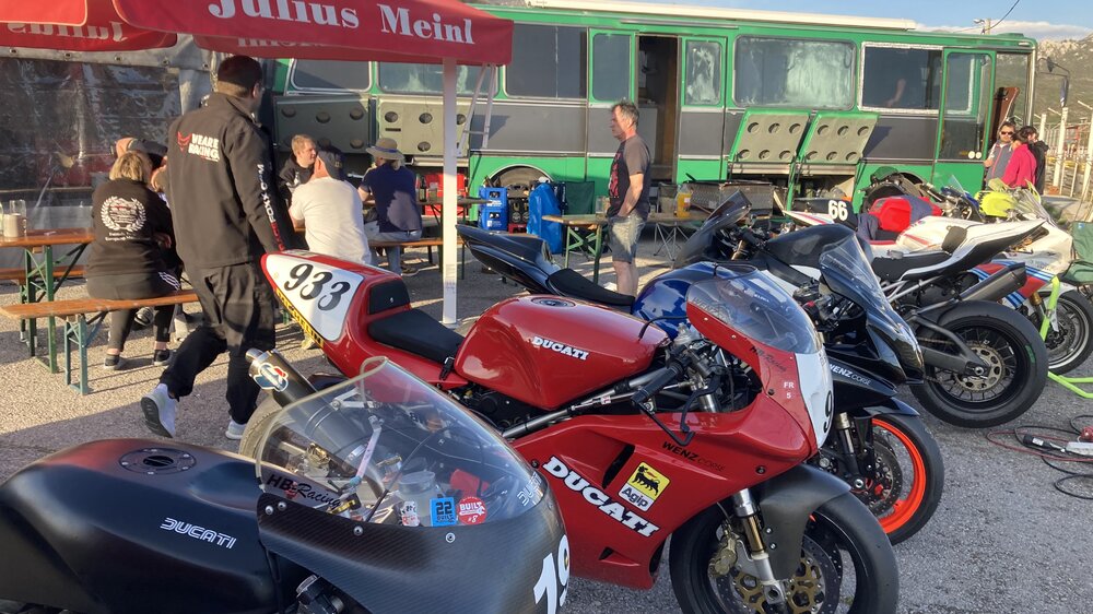 GemĂŒtlicher zweiter Abend mit vielen Bekannten und teils geilen, alten Eisen. Die ganzen Hightech Boliden gehen einem fast am Arsch vorbei wenn man JugendtrĂ€ume konsequent artgerecht bewegt sieht ! Mein Schwarm aus den 90ern ist immer noch schnell: die 851er đ Projekt fĂŒr @Woob1974 wird noch ausgesucht âđŒ