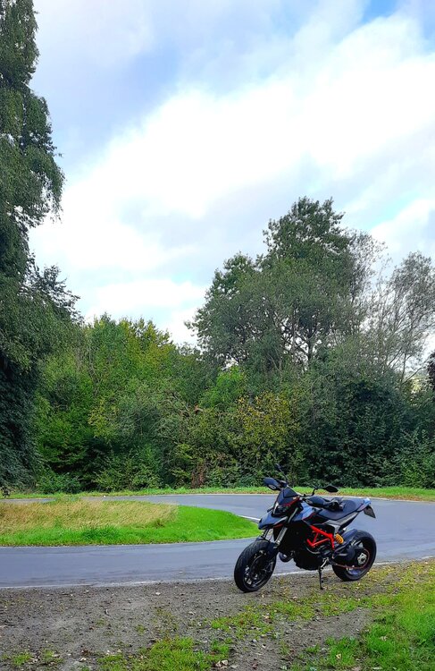 Im November nach der Arbeit mit paar Kollegen nach Belgien zum Pitbiken gefahren. Soweit alles fein. Letzter Turn, alles gut. Mitten im Turn dann in der schnellsten Kurve, die komplett voll geht und eigentlich nicht sooo krass ist: Vorderrad rutscht weg. Ich fange es ab und biege nach innen ab, baller in den Reifenstapel, fliege drüber, mit Moped.