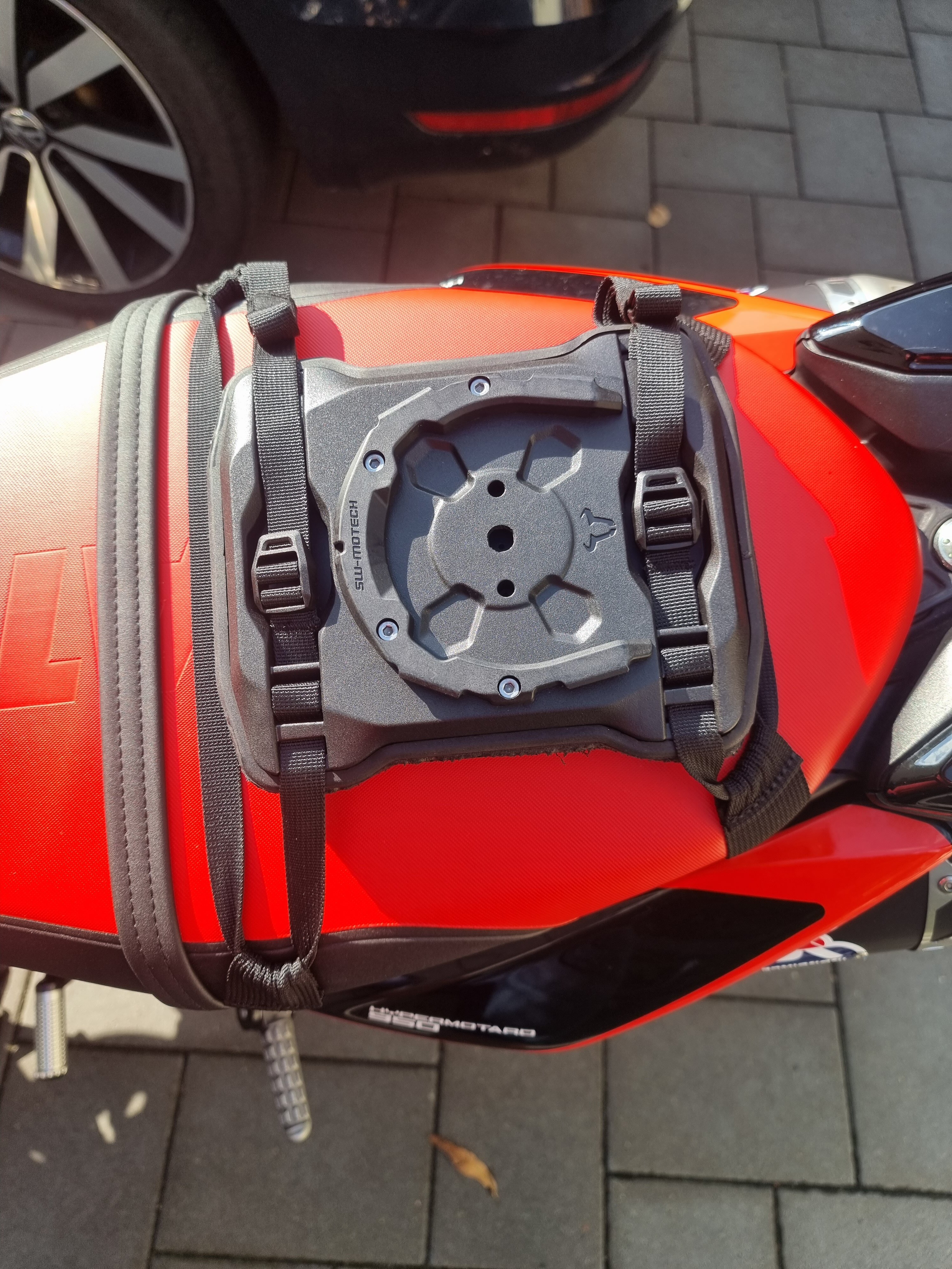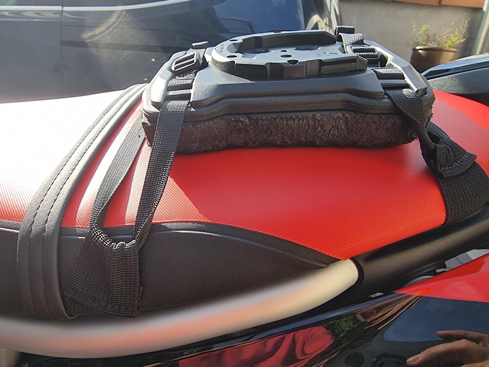 Ich habe mir jetzt auch was zurecht gebastelt: Schlaufen unterm Sitz, SW Pro Sitz adapter und die Pro Sport Tasche. Warte noch auf die Adaptererhöhung 12mm und 6mm damit die Tasche Höher über dem Ufo liegt. Unter dem Sitzadapter ist Hartschaum. Im Winter wird was für die Schraube Sitzbank gebaut mit Adapter zum Abnehmen. Der Micro kommt noch vorne mit Tankring, sollte für ein Moselwochenende reichen.