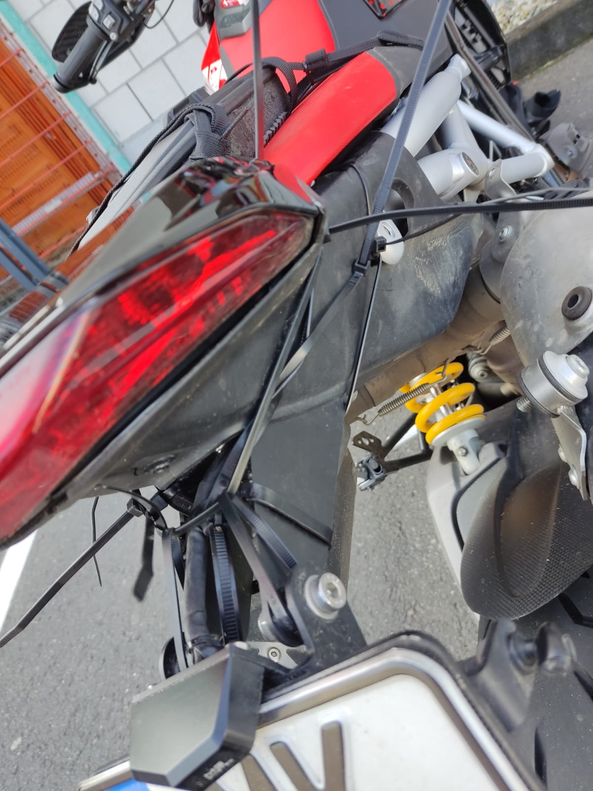 Muss jeder selber wissen, ich sehe das Risiko niedrig mit meiner Hinterradabdeckung, Kettenschutz und Hitzeschild bei einem Unfall jemanden zu köpfen.... Das Windshield vorne ist original Ducati Performance. -