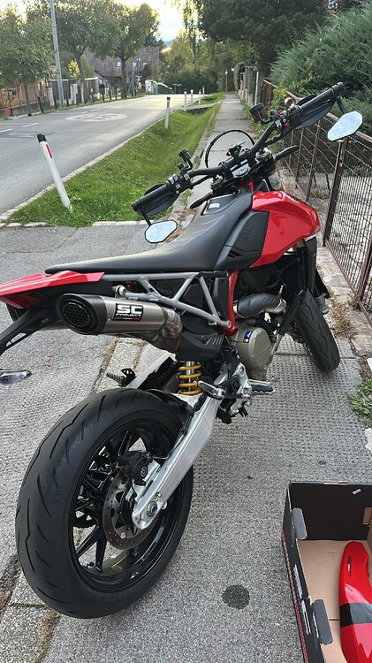 Hallo zusammen, ich bin gerade in der Überlegung welchen Auspuff ich mir an meine Hyper 950 drauf machen soll und da ich so ein genaueres Thema noch nicht hier gefunden habe, dachte ich mir ich mach's mal auf. Darum meine Bitte an alle die eine schon eine neue Zubehörtröte montiert haben: Schreibt doch bitte alle mal ein kurzes Statement ob sich der Umstieg was den Sound angeht überhaupt lohnt. Ein kurzes Video wäre auch echt super! Ich finde ja eigentlich den Serienklang schon wirklich gut, darum Frage ich mich ob das zum Beispiel der SC noch steigern kann. Danke schonmal an alle. Gruß