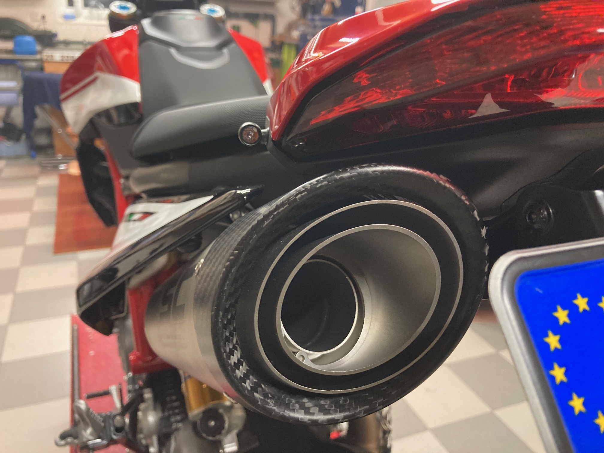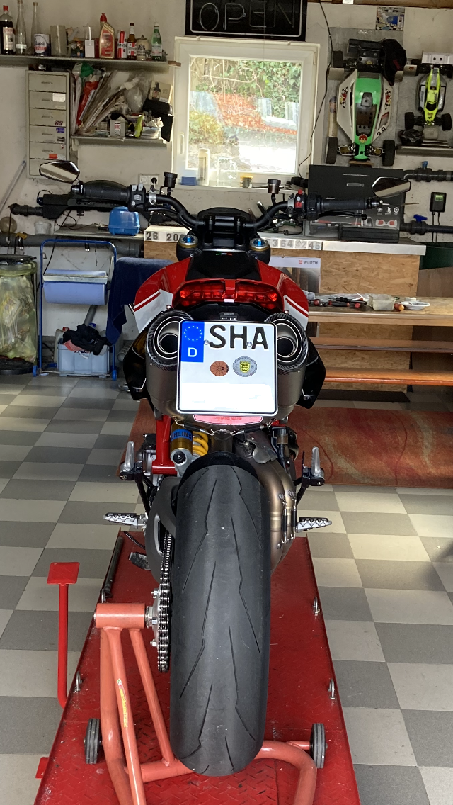 Darkside Posted March 19, 2021 Share Posted March 19, 2021 vor 11 Stunden schrieb Stephan: Feddisch 😉 Coole Lösung 👍 Gefällt mir sehr gut! vor 8 Stunden schrieb Hymotard950sp: Hast du da was an der Verkleidung bohren müssen? Geht auch mit Siemens Lufthaken 🤣 vor 2 Stunden schrieb Stephan: Naja mal sehn, denkst Du ich brenne mir die Farbe vom Schild oder es färbt braun durch ? Von hinten ist`s mir Wurscht ob es verrußt. Distanziere untern Halter noch was geht damit die Töpfe noch etwas raus kommen 😉 Die heißen Abgase verbrennen die weiße Farbe. Das Alu vom Blech wird sehr schnell sehr heiß. Das ist nicht lange so schön. 1 Quote Link to comment Share on other sites More sharing options...