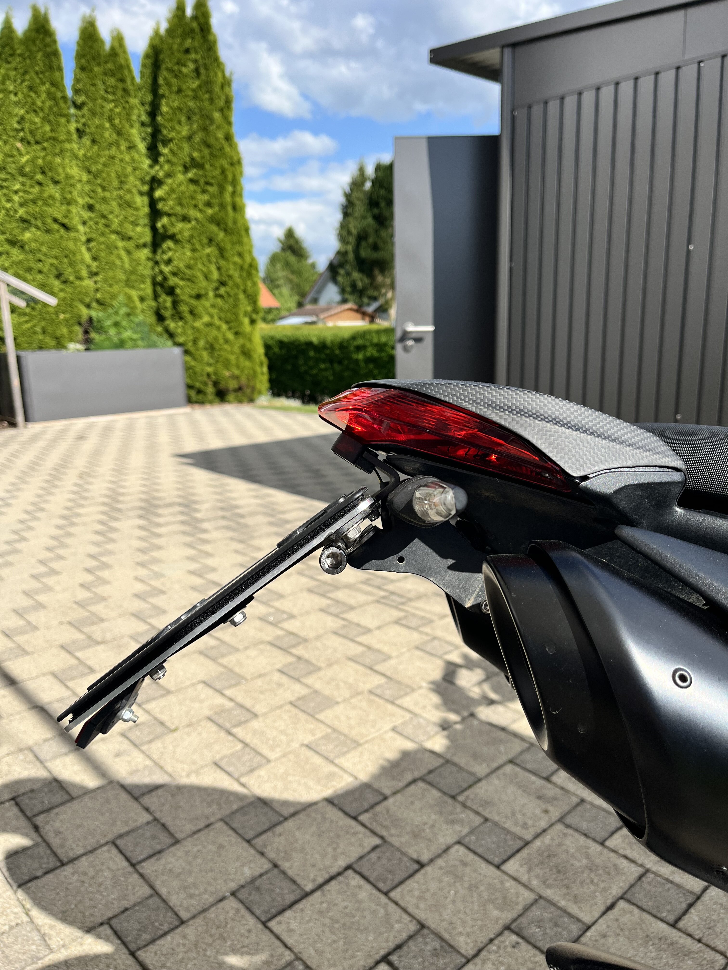 EPA Posted June 1, 2025 Share Posted June 1, 2025 @carli Mein Händler hat den verbaut: https://www.mg-biketec.com/de/onlineshop/ducati/hypermotard-950-ab-2019/540/kurzes-heck-kennzeichentraeger-kennzeichenhalter Auf alle Fälle liegen das Nummernschild und die Blinker nicht im Abgasstrom. Fand den am Anfang fast noch "zu lang", aber aufgrund der bekannten Problematik letztendlich doch sinnvoll. Quote Link to comment Share on other sites More sharing options...