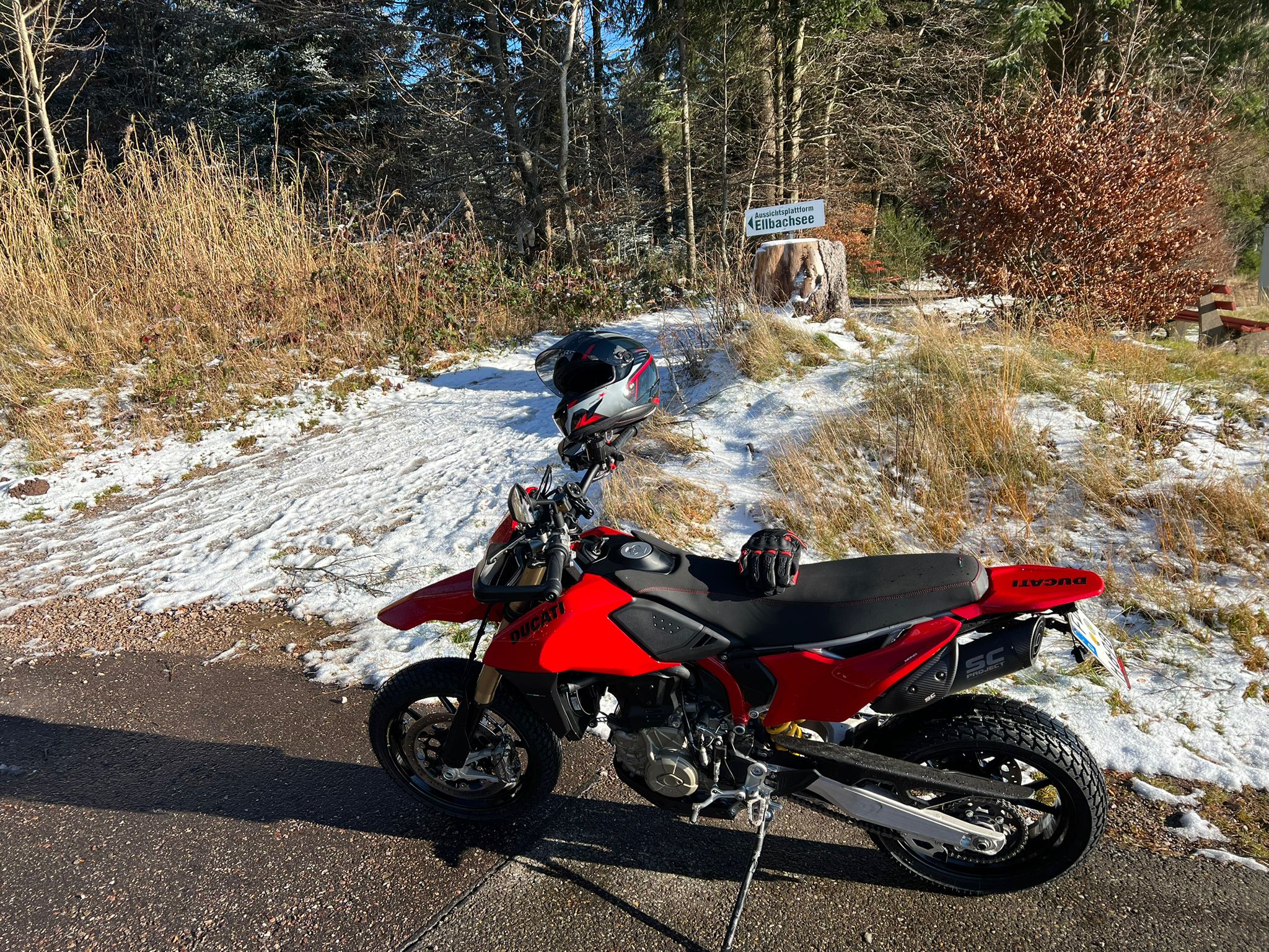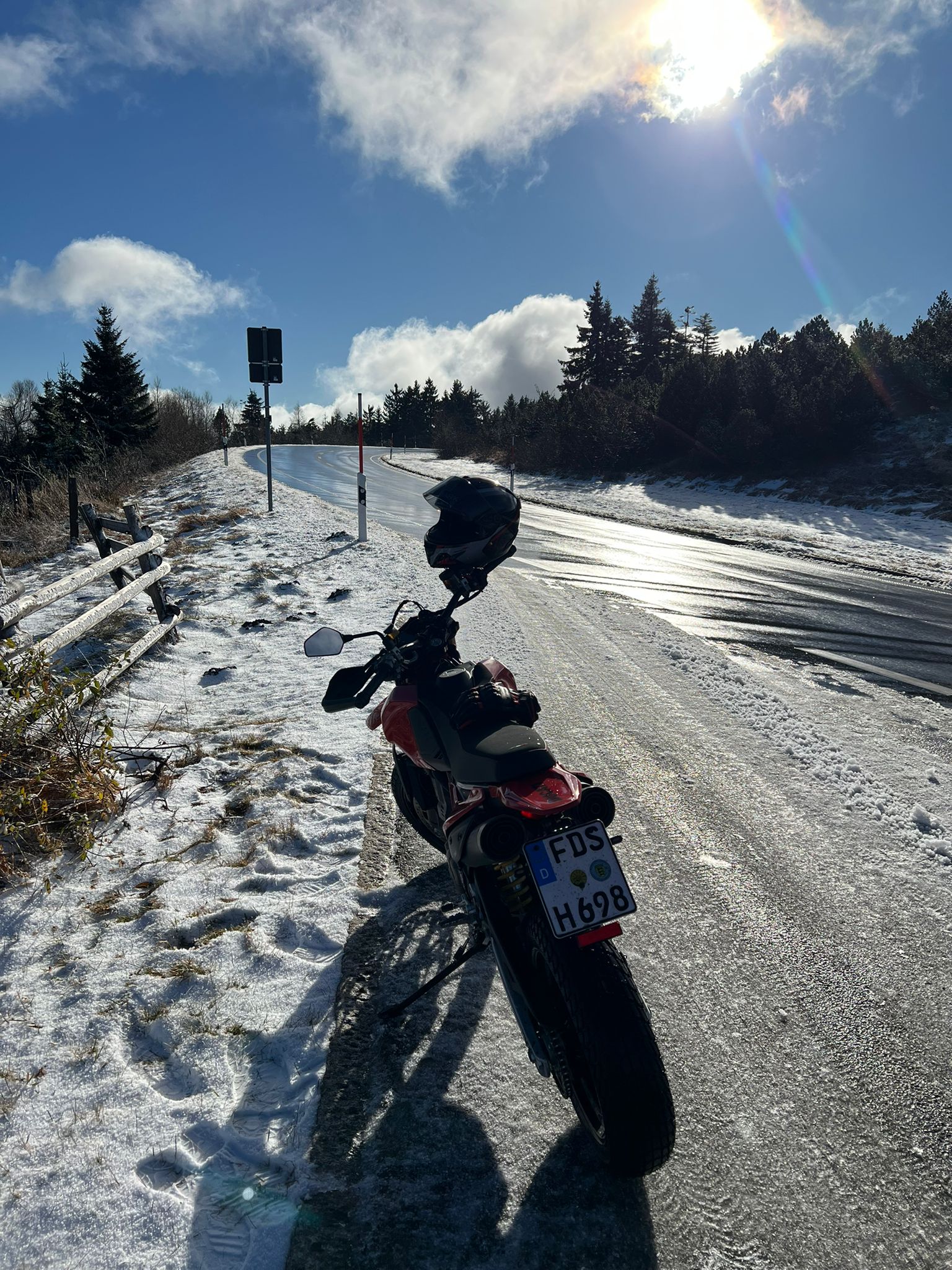 Don Pompone Posted November 18 Share Posted November 18 vor 58 Minuten schrieb Schwarzwaelder: Blauer Himmel, Sonne pur - Ruhestein, heute Dann kurzer Stopp auf 1000m - 1 Grad noch, immerhin Kaffee-Halt am Kniebis Und hier die Schattenseite der Tour 🤭 Ich war Heute auf der Schwäbischen Alb unterwegs, allerdings mit meinem Bulli und Anhänger. Da war auch alles scho gepöckelt. Dafür ist mir das Motorrad zu schade. Trotzdem schön das es noch so Winterfahrer gibt. PS. Was ist den das für eine Sitzbank auf der Mono, sieht höher gepolstert aus. Gruß Klaus Quote Link to comment Share on other sites More sharing options...