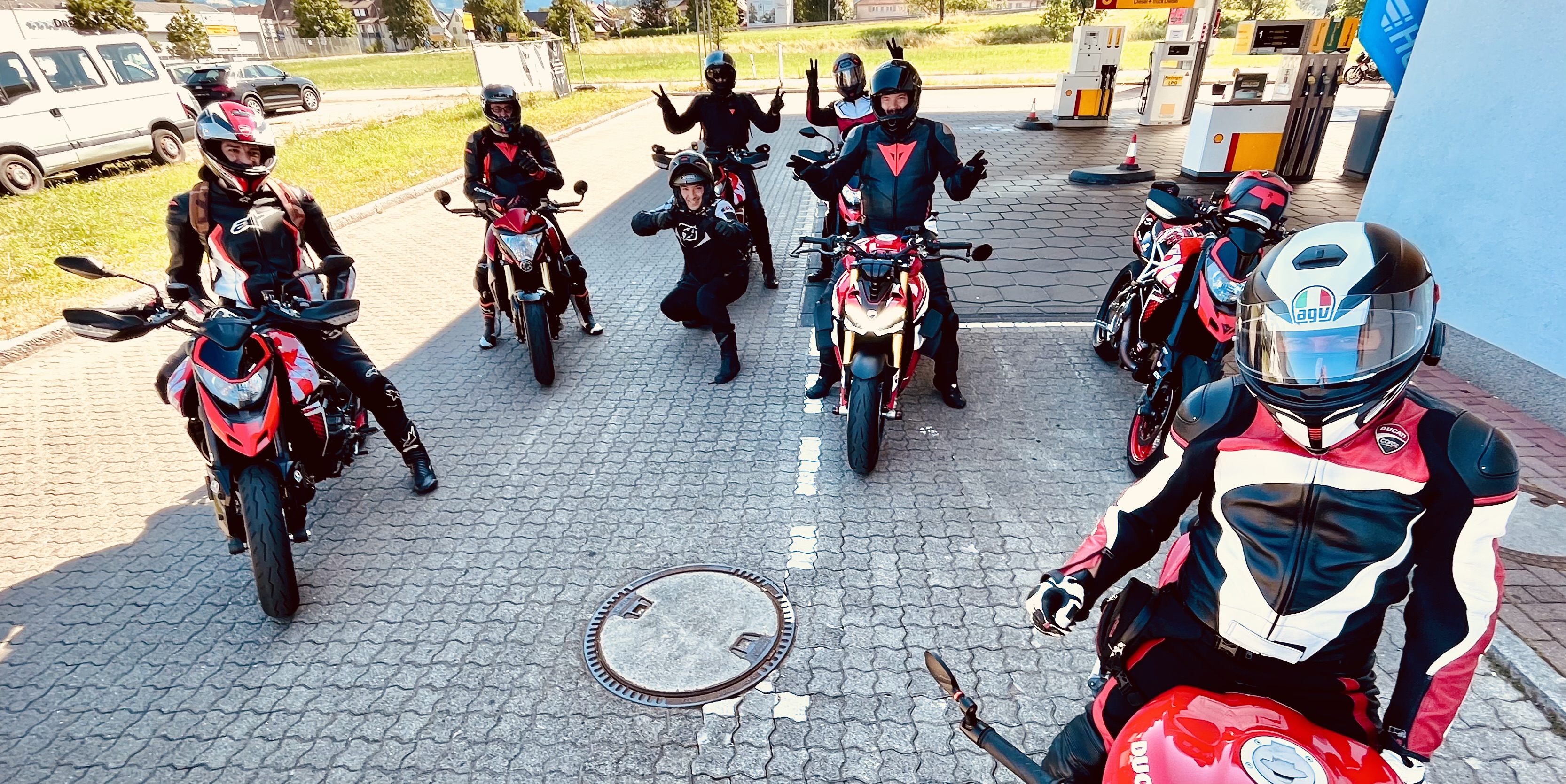 mabou950 Posted June 25, 2023 Share Posted June 25, 2023 (edited) Sommer - Sonne - Ducati! Was braucht man mehr zum Leben? Ein paar Kollegen die die selbe Freude teilen!!! Also mal fix eine Ausfahrt mit unserem D.O.C. organisiert und mit 8 Ducatisti (incl. 4Hyper!!!) und einem Spontanzugang mit ner Honda dann mal von 9- 18 Uhr den Schwarzwald unsicher gemacht. Kurven putzen, Landschaft geniessen, Pausen zum Schnacken, schönes Beizli für‘s Zmittag, und wieder retour über Kurven, Kurven, Kurven! So!, lässt sich‘s Leben! Edited June 25, 2023 by mabou950 7 Quote Link to comment Share on other sites More sharing options...