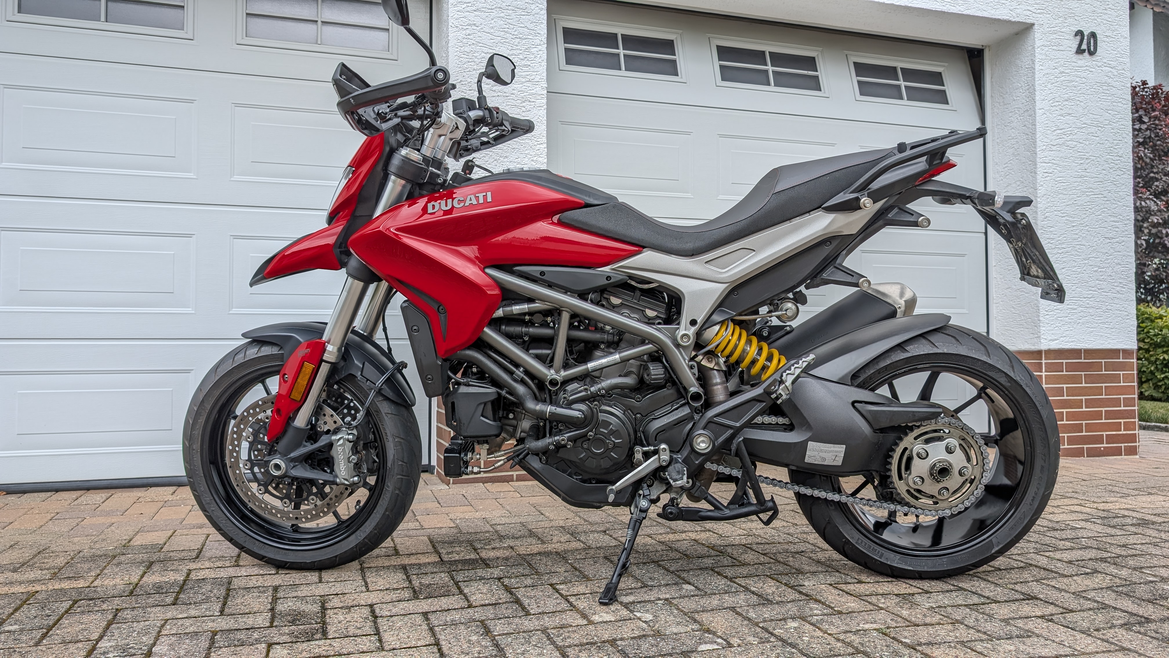 Jodi Posted September 7, 2025 Share Posted September 7, 2025 (edited) https://suchen.mobile.de/fahrzeuge/details.html?id=435793579&isSearchRequest=true&ms=7800%3B%3B%3BHyperstrada&od=down&ref=srp&refId=7e8a93cf-6c55-c448-9c78-a607822bb161&s=Motorbike&sb=p&searchId=7e8a93cf-6c55-c448-9c78-a607822bb161&vc=Motorbike Um- / unfallfrei EZ 10.10.2016 Scheckheftgepflegt - beheizbare Griffe Hinterreifen knapp 2000 KM - sehr guten Zustand Vorderreifen - nicht mehr so viel Profil Serienausstattung: Handprotektoren mit integrierten LED-Blinkern, Tourensitz, Hauptständer, Haltegriffe für den Sozius, seitliche Kofferhalterungen (Koffer meist optional) Die Hyperstrada 939 wurde im Wesentlichen als tourenorientierte Version der Hypermotard 939 konzipiert und unterscheidet sich vor allem durch die längere Gabel, den größeren Federweg, den Hauptständer, die Tourensitzbank und die Kofferhalterungen. Motor: Flüssigkeitsgekühlter Testastretta 11° L-Twin, 90° V2 Hubraum: 937 ccm Bohrung x Hub: 94 x 67,5 mm Verdichtungsverhältnis: 13,1:1 Leistung: 81 kW (110 PS) bei 9.000 U/min Drehmoment: 95 Nm bei 7.500 U/min Ventile pro Zylinder: 4 Ventilsteuerung: Desmodromisch Gemischaufbereitung: Elektronische Kraftstoffeinspritzung, Ride-by-Wire-System Getriebe: 6-Gang Kupplung: Mehrscheiben-Ölbadkupplung mit Anti-Hopping-Funktion Antrieb: Kette Fahrwerk und Bremsen Rahmen: Stahl-Gitterrohrrahmen Federung vorne: 43 mm Kayaba Upside-Down-Gabel, nicht einstellbar Federweg vorne: 130 mm Federung hinten: Einarmschwinge aus Aluminium mit Sachs Monofederbein (einstellbare Federvorspannung und Zugstufe) Federweg hinten: 130 mm Bremse vorne: Zwei 320 mm Bremsscheiben mit radial montierten 4-Kolben-Brembo-Monoblock-Sätteln, ABS Bremse hinten: 245 mm Bremsscheibe mit 2-Kolben-Bremssattel, ABS Dimensionen und Gewicht Trockengewicht (mit ABS): 187 kg Fahrbereites Gewicht (mit ABS): 210 kg Sitzhöhe: 810 mm Radstand: 1.485 mm Tankinhalt: 16 Liter Reifen vorne: 120/70 ZR17 Reifen hinten: 180/55 ZR17 Elektronik und Ausstattung Assistenzsysteme: Bosch ABS, Ducati Traction Control (DTC) Fahrmodi: Sport, Touring, Urban (mit unterschiedlicher Leistungsabgabe und ABS/DTC-Einstellung) Instrumente: LCD-Display Edited September 19, 2025 by Jodi Link to comment Share on other sites More sharing options...