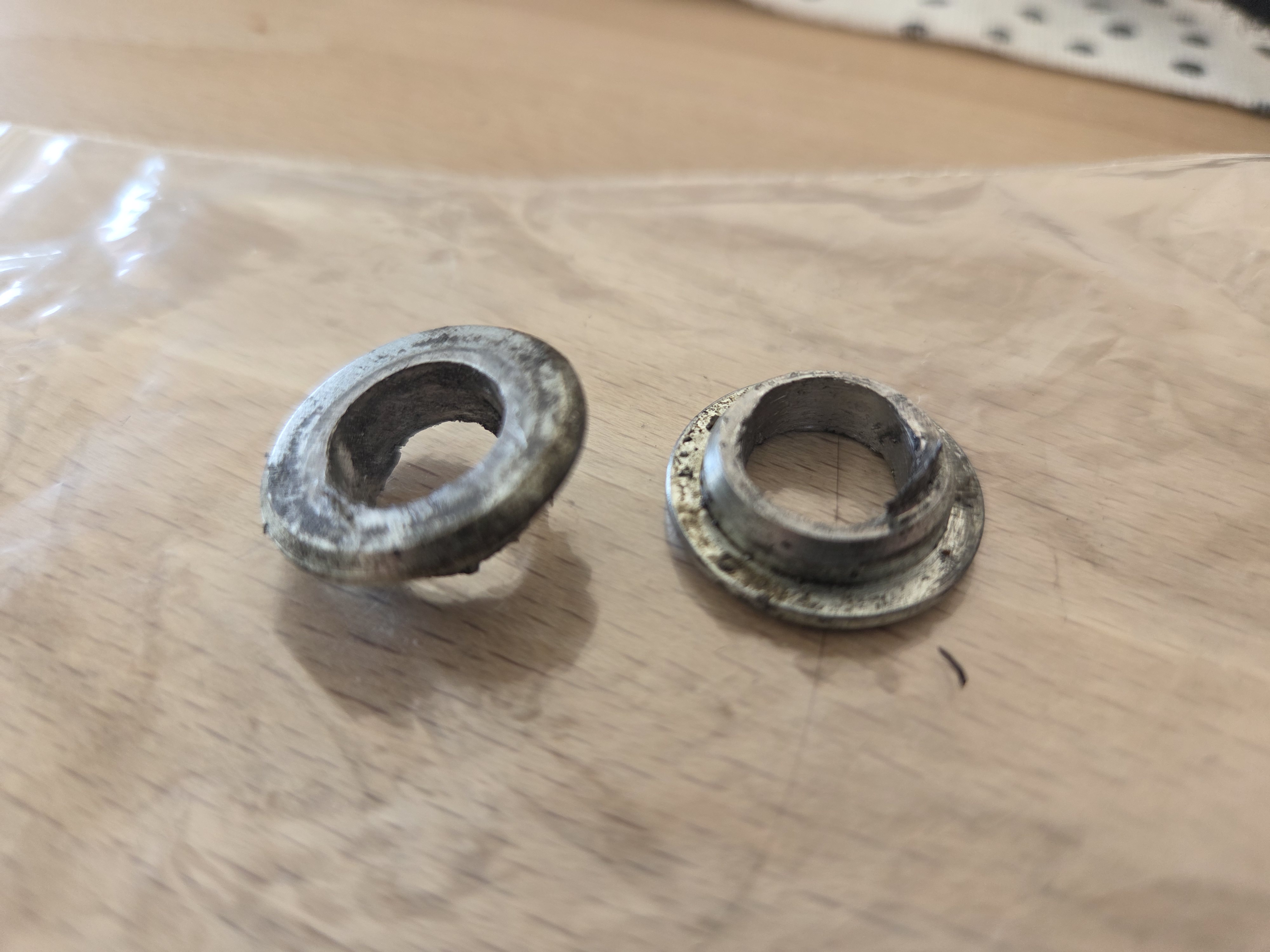 CubaLibreee Posted Monday at 08:04 AM Author Share Posted Monday at 08:04 AM (edited) vor 28 Minuten schrieb Murdog: Bei mir sind wirklich alles Versuche gescheitert und ich habe eine neuen gebrauchte Schwinge eingebaut. Hitze, bohren und schmieren, nix, garnix!!! Luigi hat das nicht so richtig geplant... Die Angst hatte ich auch. Aber das Gewindestück bei mir lies sich dann einfach raus drehen! Hast du die alte Schwinge noch? Falls ich das Sachs Federbein irgendwann wieder einbauen sollte brauche ich folgende Scheiben neu? Hat einer eine Idee wo ich die her bekomme? Bzw. wird es die wohl nur als Lagersatz geben? Selber drehen wäre kein Problem aber V2A wird zu weich sein und alles andere rostet ohne Beschichtung. Beim Bohren in dem Material hat der HSS Bohrer auch etwas gejammert da heißt es schnell Drehzahl runter! Edited Monday at 08:11 AM by CubaLibreee Quote Link to comment Share on other sites More sharing options...
