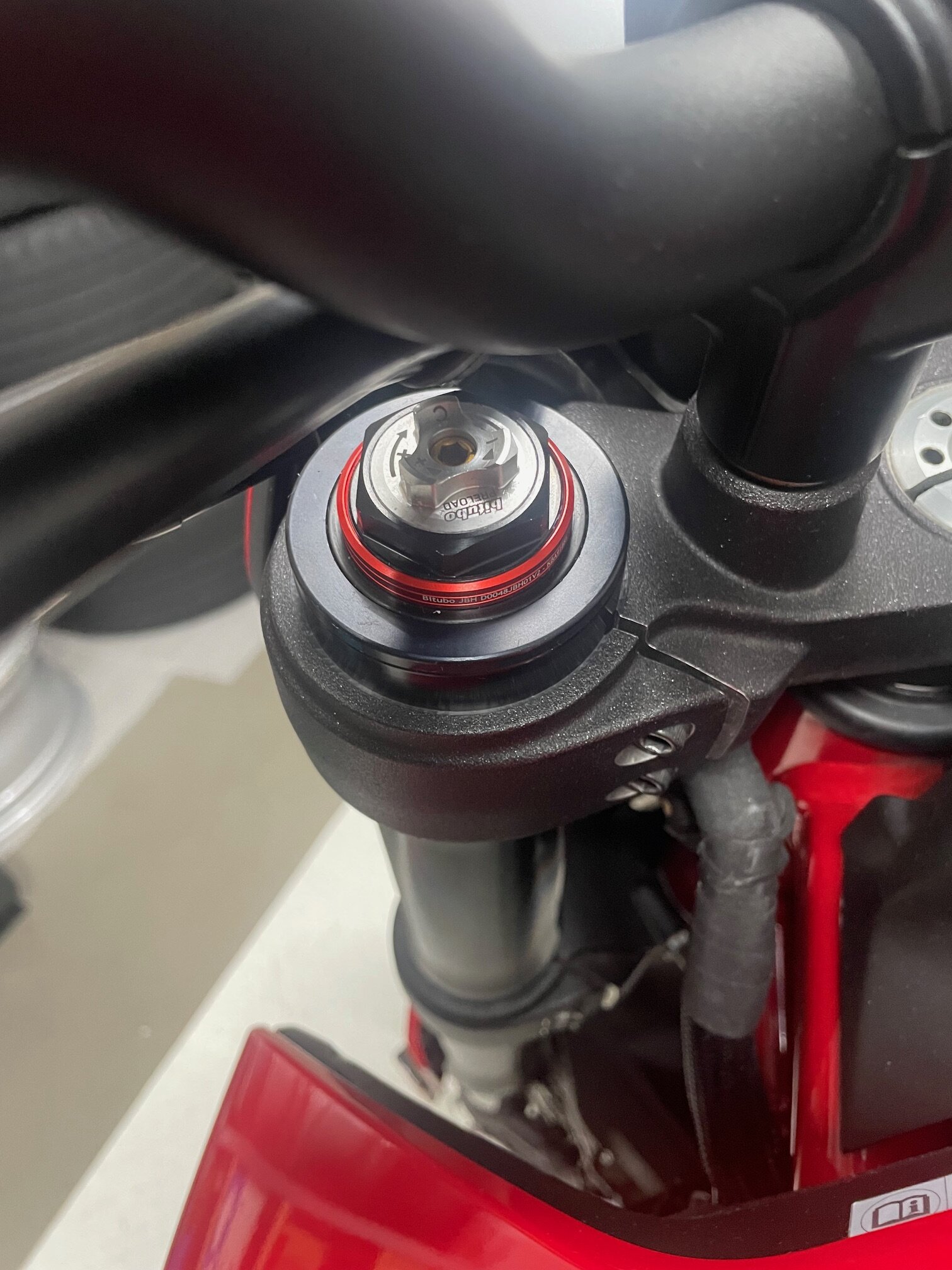 Duc4Ever Posted January 2, 2025 Share Posted January 2, 2025 (edited) So - Cartridge ist drinne und Gabel steckt wieder im Bike. Eigentlich bin ich damit wieder Saisonbereit - nur das Wetter spielt nicht ganz mit. Heute Morgen 10 Grad - jetzt Schneefall. Zum technischen noch was: Original verbaut Ducati in der Marzocchi eine 11.8er Feder (linear). Das ist aus meiner Sicht schon ziemlich heftig. Da wundert es mich nicht, dass ich nie den Federweg (175mm) ausreizen konnte. Im Race-Bike fahre ich eine 9.5er Feder. Bitubo liefert eine 7.5er Feder mit. Mit den angegebenen 5mm Vorspannung habe ich auf die Schnelle gemessen, jetzt 8mm mehr static sag. Werde dann nochmal genauer messen. Bin gespannt, wie ein Flitzebogen, wie sich der Gerät jetzt dann so gibt. PS. Das mit den 145 cu.cm aus dem WHB hat sich auch geklärt, sollte eigentlich 145mm heißen. Bitubo schreibt 160mm Luftpolster, also auch weicher. Edited January 2, 2025 by Duc4Ever 5 1 Quote Link to comment Share on other sites More sharing options...