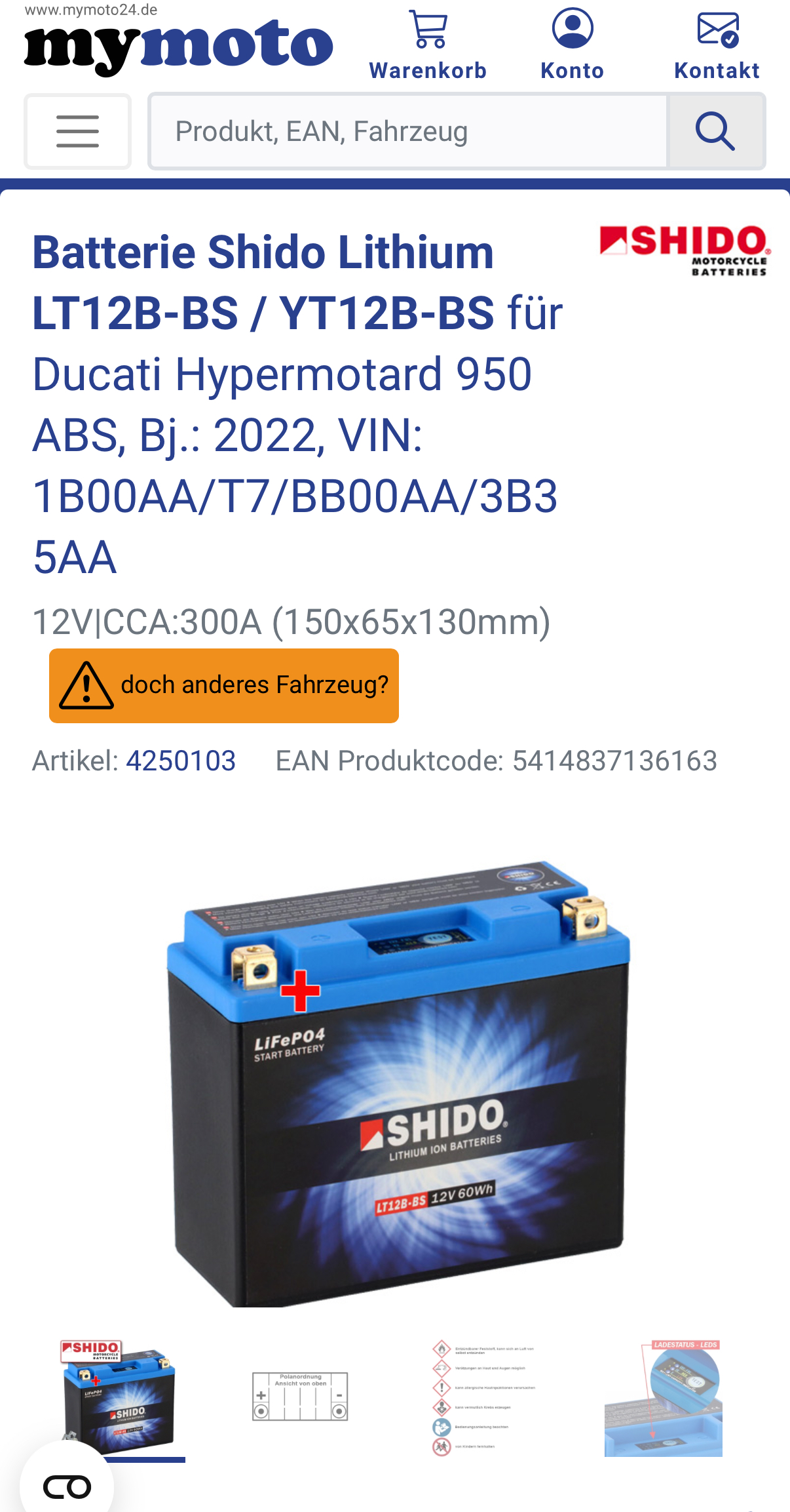 Duc4Ever Posted February 25, 2025 Share Posted February 25, 2025 (edited) Habe noch eine JMT Lithium-Ionen-Batterie aus dem Race-Bike gefunden. ...und habe sie jetzt mal in die Hyper verpflanzt. Mal schauen ob die 2.0Ah reichen (Original: 6.5Ah). Man sagt ja man bräuchte mit der Li-Io nur 1/3. ...starten ging schon mal damit. ...noch ein bisserl laden und Zellen optimieren - und vielleicht habe ich mir damit etwas Ăźber 3kg gespart und ein Hunderter fĂźr ne Neue.đ Edited February 25, 2025 by Duc4Ever 3 Quote Link to comment Share on other sites More sharing options...