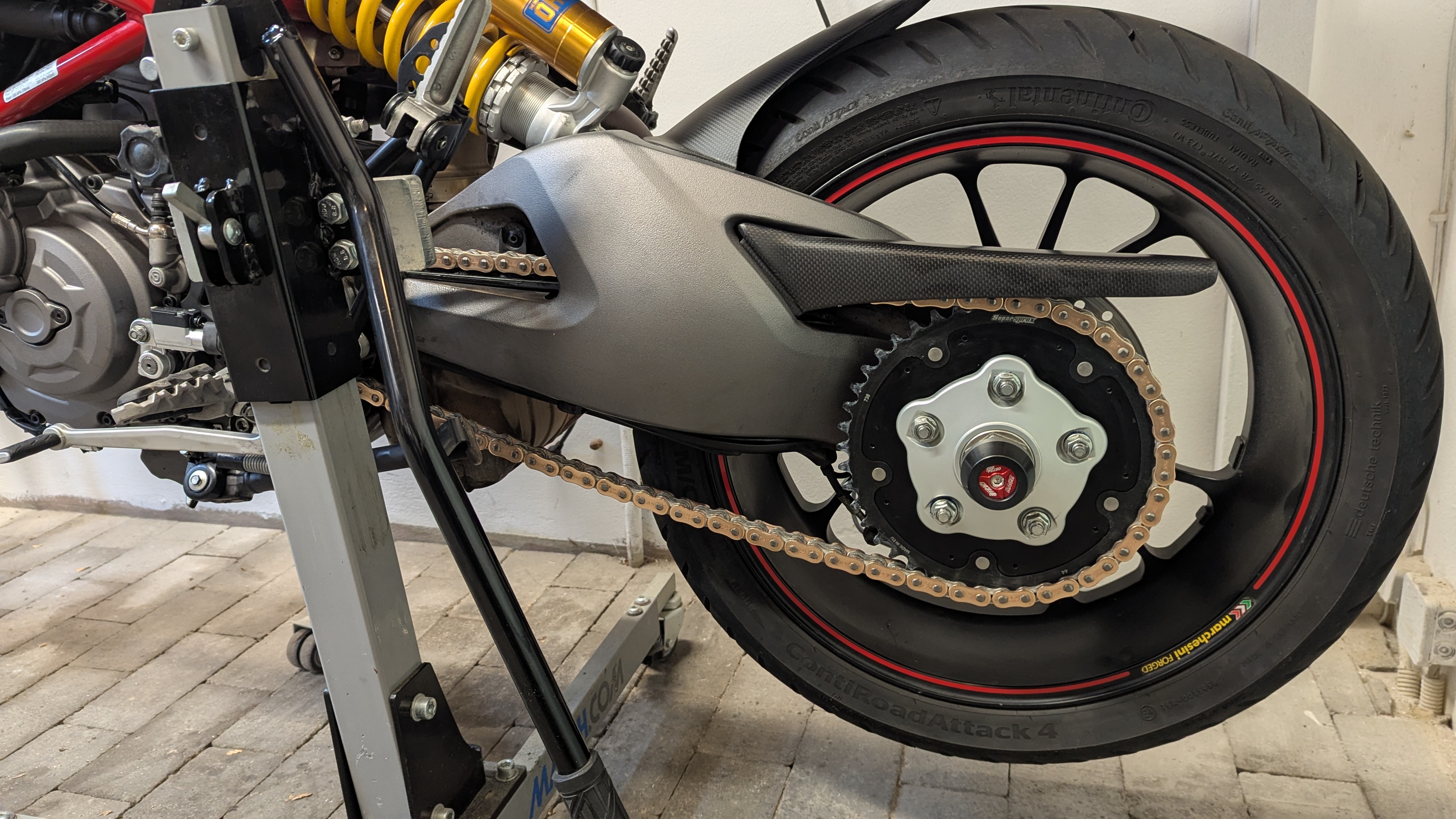 scrdel Posted February 23, 2025 Author Share Posted February 23, 2025 (edited) Kettensatz erneuert....und Ăźber die FuĂrastenanlage vorne geärgert....2mm fehlen um das Ritzel ohne teilweise abbauen zu demontieren... Die olle Regina war nach knapp 25tkm noch gar nicht so schlecht. Pflege mit PDL.  Nu ist ne Enuma ZVX3 drauf mit Schraubschloss und Supersprox Kettenrad.   Edited February 23, 2025 by scrdel 3 Quote Link to comment Share on other sites More sharing options...