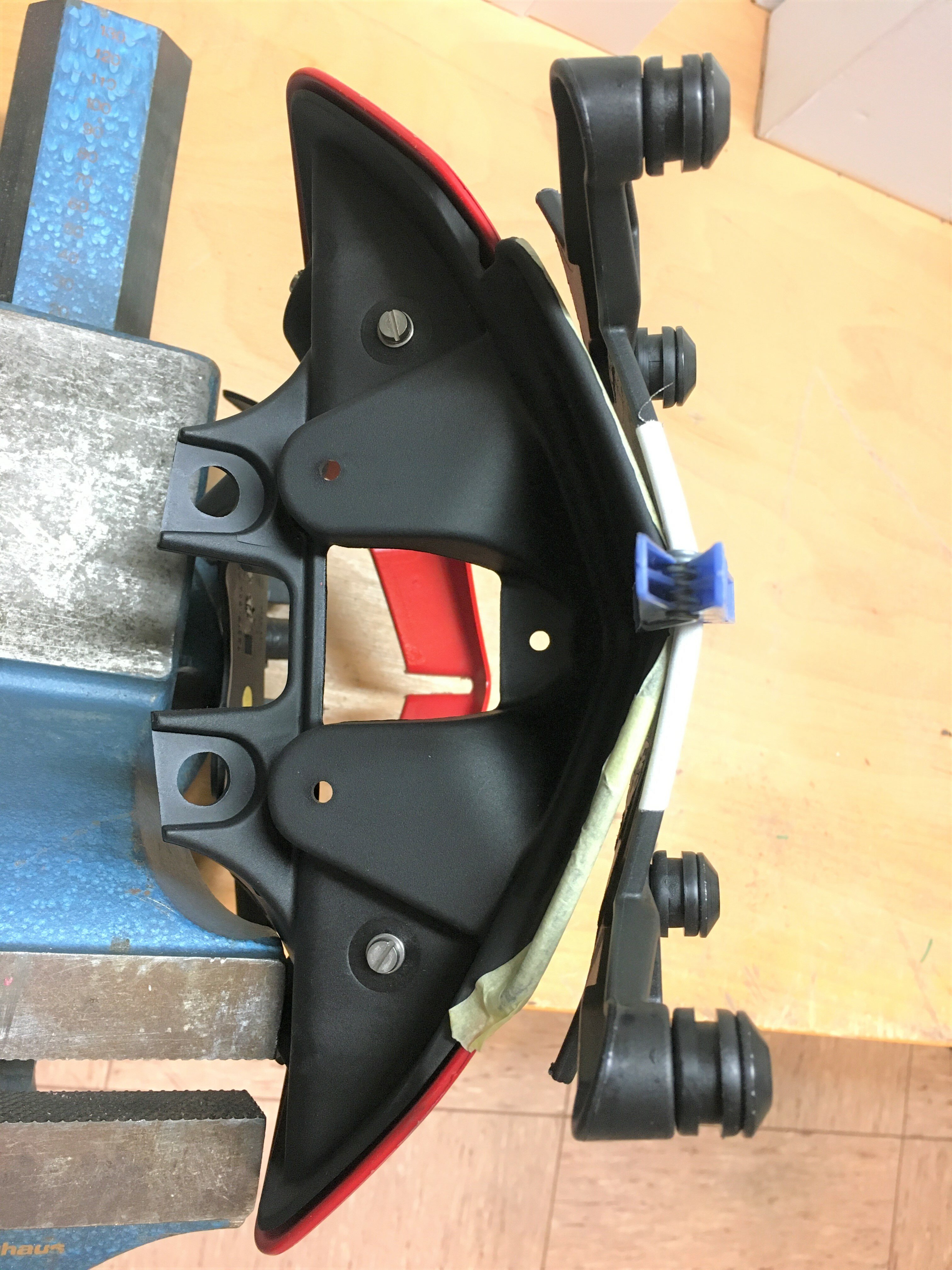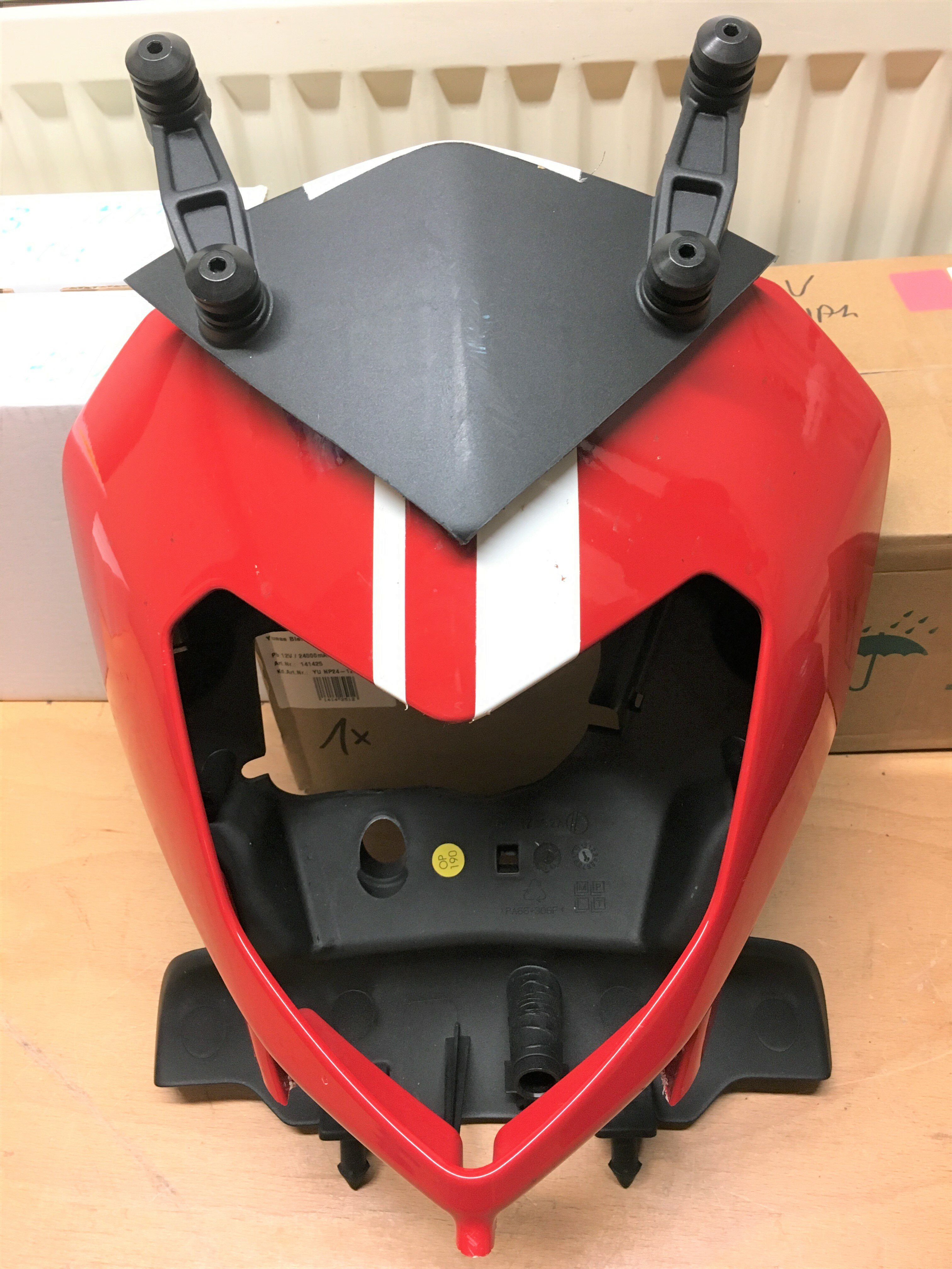 Glückspilz Posted January 10, 2022 Share Posted January 10, 2022 (edited) Am 6.1.2022 um 21:00 schrieb McQuade: Wenn rechts das neue ist gefällt es mir besser, der Übergang sieht einfach besser aus 😍 Schade das es für die 1100er da nix gescheites gibt 😪 Na, so ganz aussichtslos ist das ja nicht... Ich hab das mal für die 11er angefangen.... Halter für das Teil der 821/939 angepasst: Musste ordentlich was weggedremelt werden auf der Rückseite. So ist es Serienmässig: Verschraubt man dan am besten Dreipunkt; oben braucht man wohl schräge Abstandshalter. Die OBI -Biber unter uns schaffen das... Die Nachrüstkippa der 821/939 ist 22 cm hoch; die Oberkannte der serienmässigen11er Hypermaske würde dann ca 9 cm überragt.. Mann kann das Ganze dann noch maximal 2 cm höher montieren;je nachdem wie´s gefällt. Hier kann man sich die Größenverhältnisse ungegfähr vorstellen: Wenn man keine Originalteile zerstören will braucht man 60 Eu für den schwarzen 11er Lampenträger plus 40 Eu für den 821/939 Träger mit Tüllen und Schrauben. Dazu noch die Kosten für das Carbonteil; gibts "Glänzend" dummerweise nur in Canada und bei Ilmberger in Sonderanfertigung mit Tüv und Hardcote für 180 Euro. Beim Ilmberger bin ich dan nach 5 Monaten Bestellzeit abgesprungen; weil ich nicht mehr umbauen wollte... das Carbonteil überlappt ja dann die rote Lampenmaske; durch die seitlichen Stege "schwebt das Näßchen dann wohl 1,5 cm in der Luft". Der extrem weggedremelten Träger sieht man dann praktisch überhaupt nicht; im Gegensatz zu der 821/939 Serienvariante... Könnte gut aussehen .... Inspiration kam von einer Hyper mit dem übertrieben großen Schild der 12er Multi.... Edited January 10, 2022 by Glückspilz 1 1 Quote Link to comment Share on other sites More sharing options...