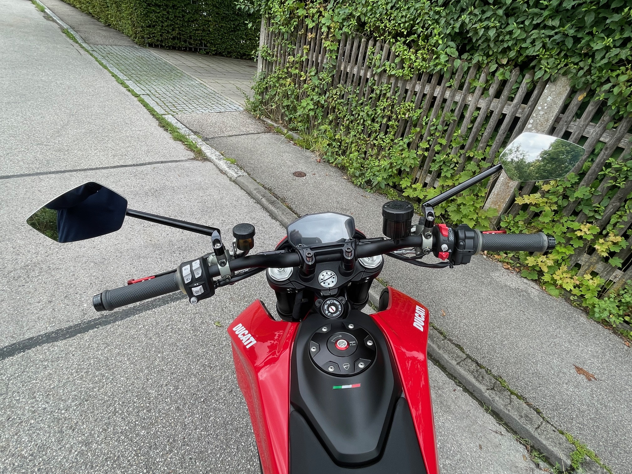 Duc4Ever Posted July 24, 2024 Share Posted July 24, 2024 (edited) Hatte letzte Woche das "Glück", dass mir so ein trotteliger Radfahrer an der geparkten Hyper den linken Spiegel weggefahren hat. Die Geschichte die mir dann erzählt wurde war sehr suspekt und er wollte es über seine Haftpflicht abrechnen lassen. Da ich nicht bereit war für 93 Euronen so einen lausigen originalen Spiegel zu kaufen und er nicht bereit war 50€ mir bar zu geben, erklärte ich ihm freundlich, er könne mir den Buckel runter rutschen. Das mit dem drunterliegenden Körperteil verkniff ich mir. Da ich schon seit geraumer Zeit mit den Motogadget mo.view race schwanger ging, haben die es jetzt sein müssen. Die rabenschwarze Brühe der Kupplung habe ich in dem Zuge auch gleich gewechselt. Edited July 24, 2024 by Duc4Ever 1 Quote Link to comment Share on other sites More sharing options...