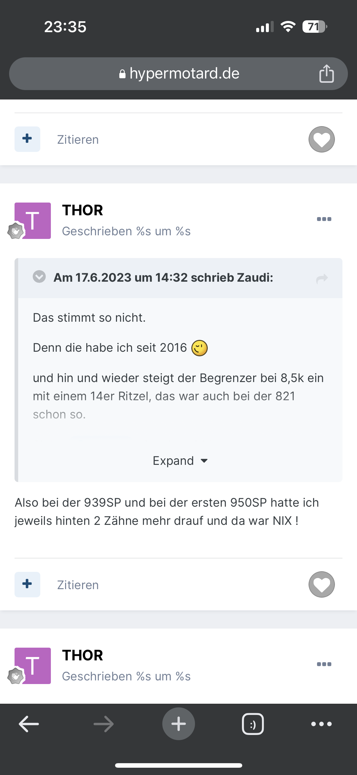 THOR Posted June 24, 2023 Share Posted June 24, 2023 Am 20.6.2023 um 16:37 schrieb Zaudi: Sag mal… willst du mich eigentlich veräppeln oder ist lesen nicht deine stärkste Kraft? Ich schreibe doch die ganze Zeit, hinten 2 mehr ist super duper… Vorne ein weniger bringt Probleme…. Und was ist dein Problem, was hast Du für einen Umgangston🤬 1 Quote Link to comment Share on other sites More sharing options...