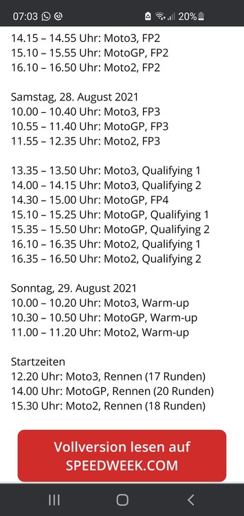 LM22 Posted March 15, 2021 Share Posted March 15, 2021 Am 11.3.2021 um 19:54 schrieb nichtdieMama: Ihr wisst garnicht wie ich mich auf die neue MotoGP Saison freu! Da schließe ich mich an. Kann es kaum abwarten. Die Übertragung wieder bei Servus TV oder hat sich was geändert? Quote Link to comment Share on other sites More sharing options...