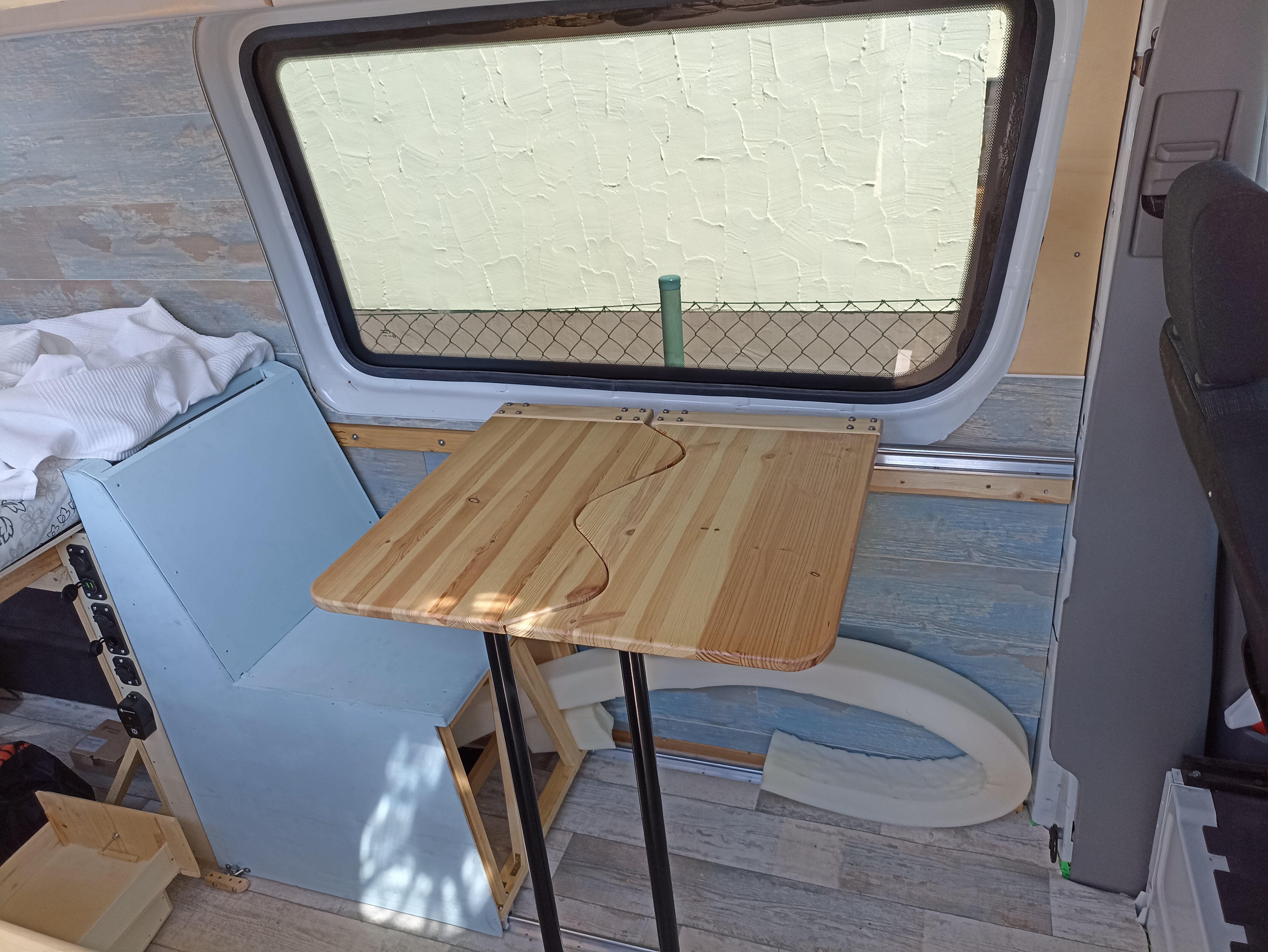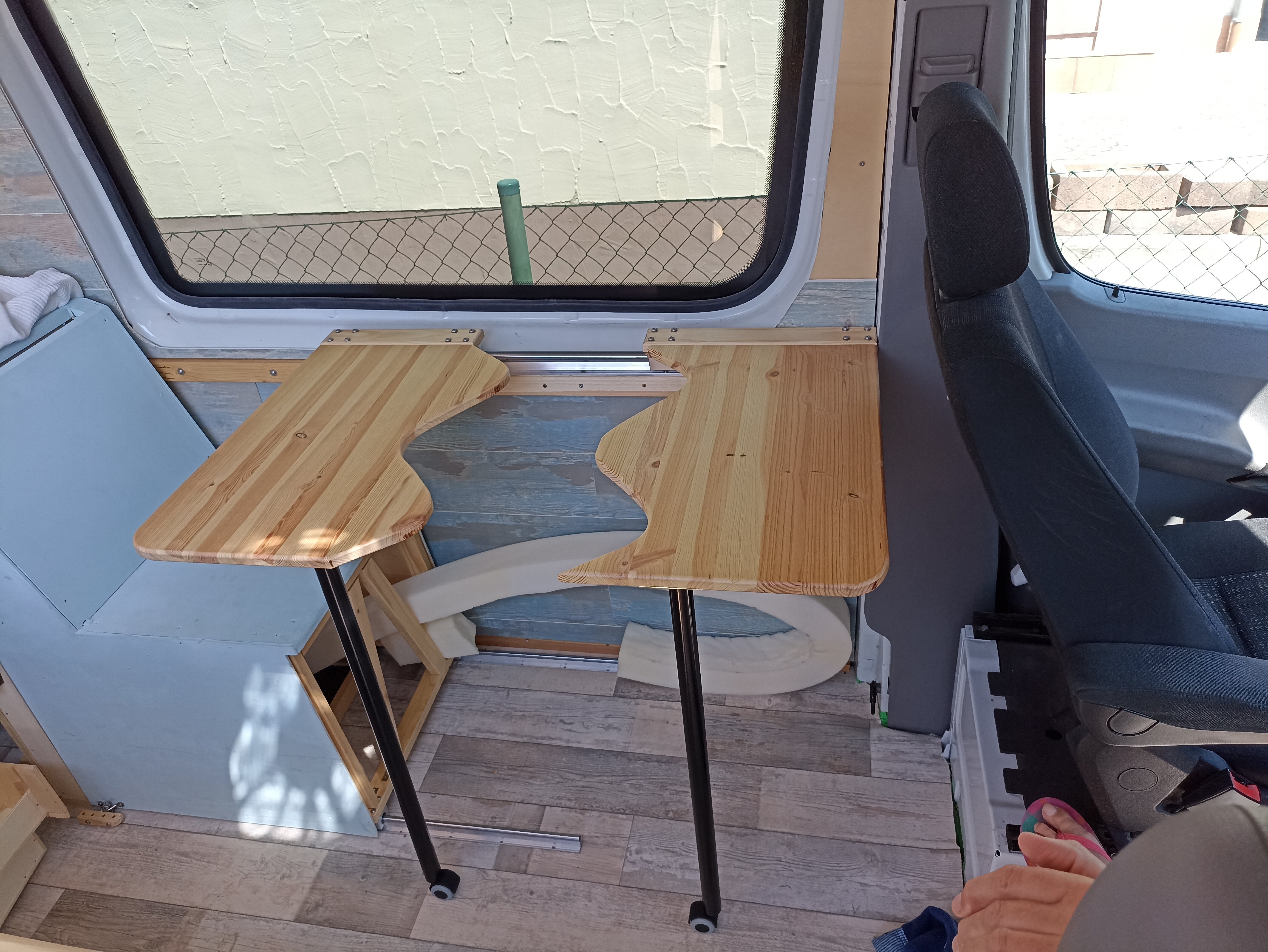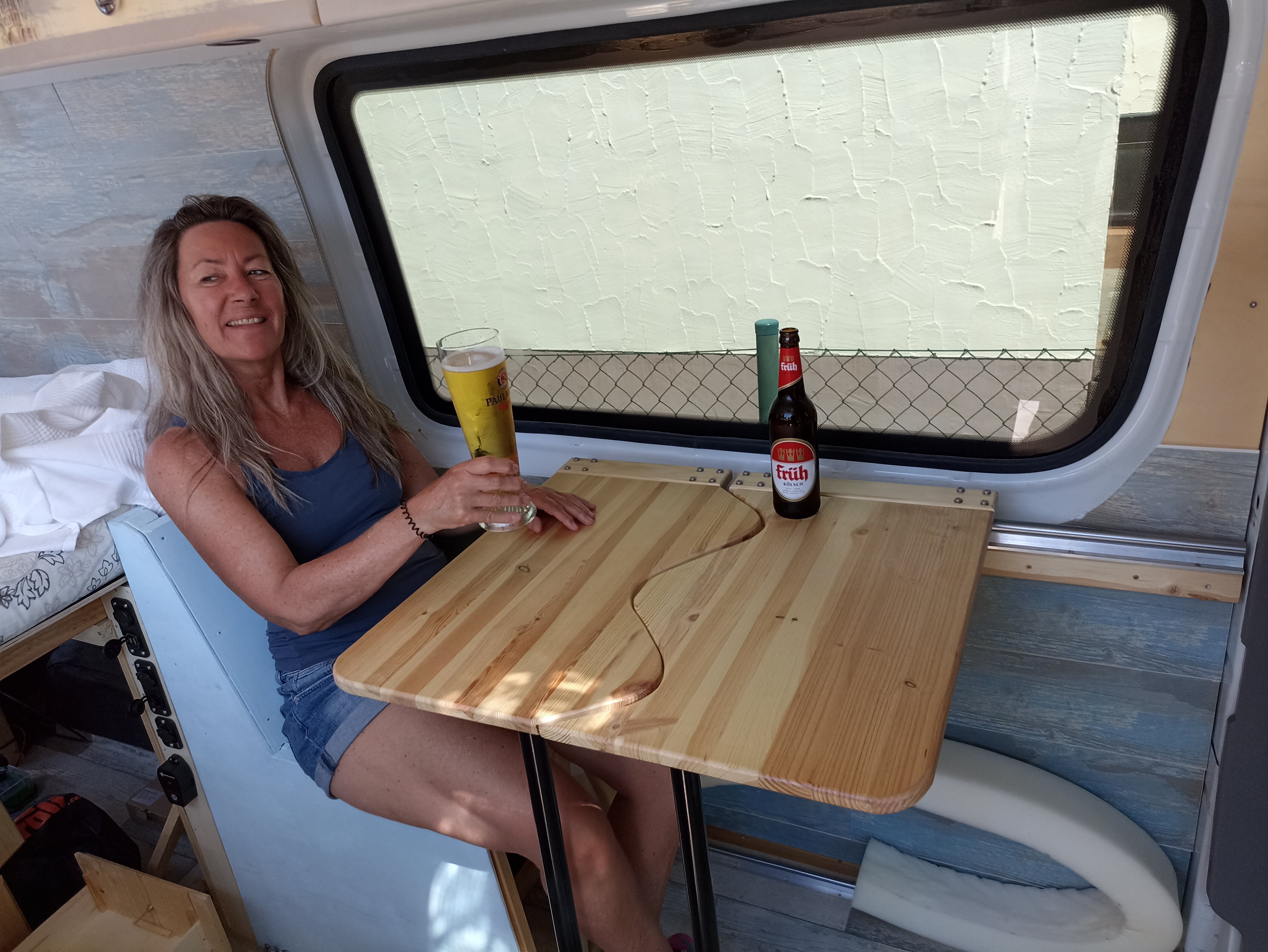 Super-Moto Posted July 24, 2022 Author Share Posted July 24, 2022 Projekt Camper 1.0 Neben vielen Kleinigkeiten haben wir unter anderem die Beine für die Klapptische verbaut, die selbstverständlich mit Rollen versehen wurden um den Tisch bequem von sich weg und an sich herran ziehen zu können. Mann kann sich also bequem hinter den Tisch setzen ohne das man auf seine Beine achten muß. Und jetzt wo der drehbare Sitz installiert wurde, kann man auch erkennen warum wir den Tisch teilbar gemacht haben. Der Tisch wäre für den einen oder anderen "je nachdem auf welcher Seite man sitzt" einfach zu weit weg gewesen. Und so kann man sich seine Tischseite soweit ranziehen wie man gerne möchte. Der drehbare Sitzteller hebt den ganzen Sitz nochmals um einige Zentimeter in die Höhe. Was mir aber sehr entgegen kommt weil ich gerne etwas höher sitze. Der Sitz stößt allerdings beim drehen gegen die Handbremse und läßt sich auch mit Gewalt nicht darüber hinweg drehen. Also muß man sich zu dem drehbaren Teller auch noch etwas besorgen das die Hanbremse etwa 3 cm tiefer legt. Zu beachten ist auch das die Airbag Sensoren für den Gurtspanner bei der demontage nicht abgerissen werden und man die Kabelenden durch die Drehöffnung führen muss, da es sonst zur Quetschung der Kabel kommen könnte. Zusätzlich sollte die Zündung NICHT eingeschaltet werden solange die Kabel getrennt sind da es sonst zur Fehlermeldung kommt die dann erst wieder von einer Fachwerkstatt gegen Euros gelöscht werden muß. Die Gasinstallation hat samt Leitungen und Gaskasten auch relativ gut gefunzt und wartet jetzt auf die Gasabnahme. Aber auch hier bestätigte sich wieder mal eine Handwerkerweisheit, die ich leider ab und zu immer mal wieder versuche zu ignorieren und die so gut wie immer bestraft wird. Kaufe niemals billiges Werkzeug denn dann kauft man immer zweimal 😞 Mit der allerletzten Biegung "Glück gehabt" brach die Rohrbiegezange dann ohne jede Vorwarnung einfach durch. Zu guter letzt funktionierte aber alles wie es soll und einem gemeinsamen Camperfrühstück steht nun nichts mehr im Weg. Übernächste Woche "Dann habe ich auch alle elektronischenSchnittstellen verkabelt" wird unser allererstes Camper WE in Rodenkirchen statt finden......Wir sind gespannt 🙂 Und dank der Hilfe der besten Praktikantin der Welt, die sich gestern bei einem Mädelsfrühstück mal erholen durfte, ging heute alles wirklich sehr schnell und easy über die Bühne. 2 Quote Link to comment Share on other sites More sharing options...