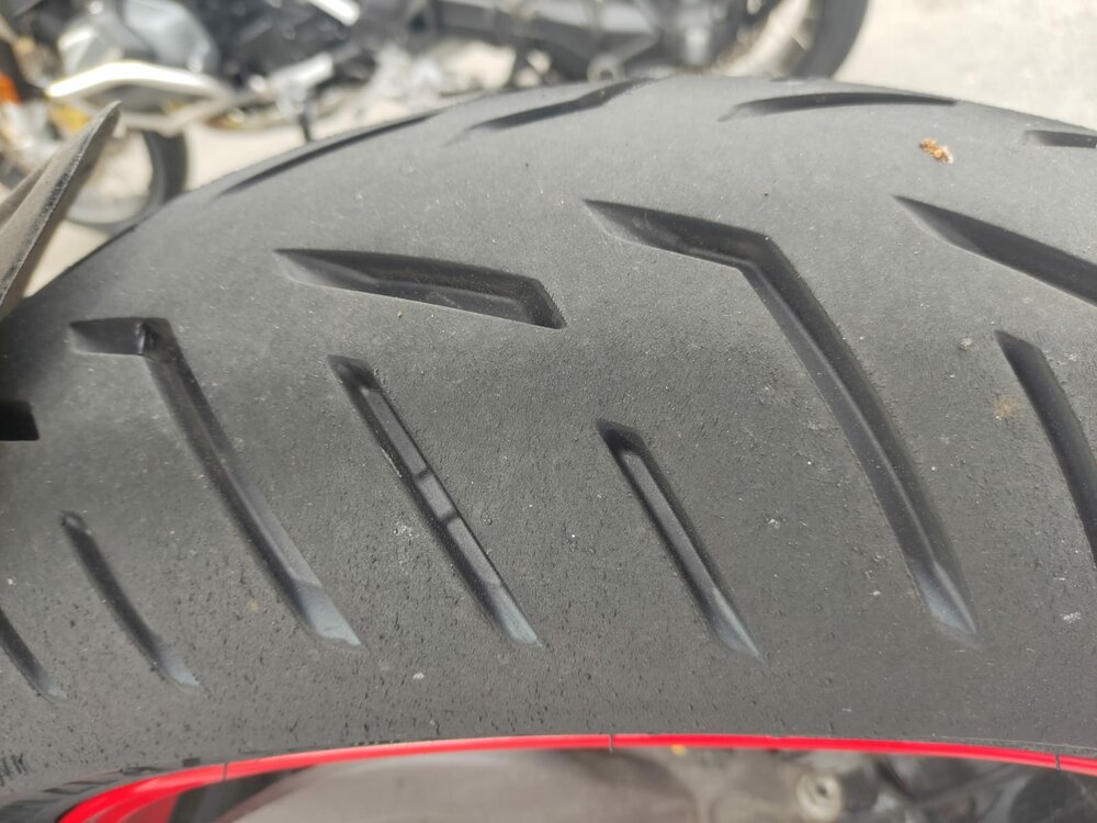 Gaim Posted June 4, 2023 Share Posted June 4, 2023 (edited) Ich mag jetzt auch mal Bilder vom Reifen beitragen. 2,3 / 2,3 - ganz ordentlich angegast… aber sicher noch kein Vergleich mit euch. RVE im Standard-Touring, nur WheelieControl eine Stufe höher. Wenn man in der Kurvenhatz ist und er Temperatur hat, dann ist er sehr agil. Kalt finde ich ihn.. Edit: (vorher „so recht träge“) etwas träger. Vertrauen ist aber da. Ansonsten „bappt“ die Flanke schon ordentlich. Ich bin ziemlich zufrieden mit dem Reifen. Edited June 6, 2023 by Gaim Fehlendes „zufrieden“ ergänzt 4 Quote Link to comment Share on other sites More sharing options...
