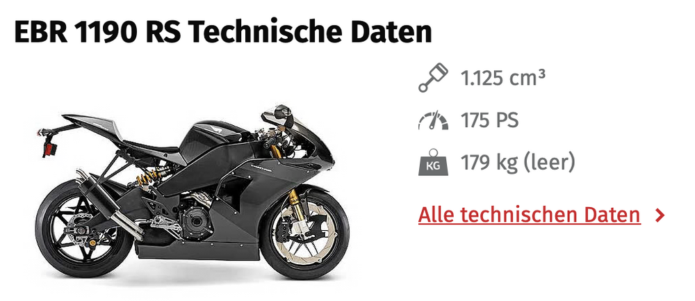 Keksvernichter Posted December 5 Share Posted December 5 (edited) Moin Gemeinde, hat schon mal einer von Euch etwas von EBR gehört? scheint die Rennsportabteilung von Buell zu sein. Aber in Deutschland nicht wirklich bekannt oder? Ist zwar ein altes Eisen aber die Daten sprechen denke ich für sich... Edited December 5 by Keksvernichter Quote Link to comment Share on other sites More sharing options...