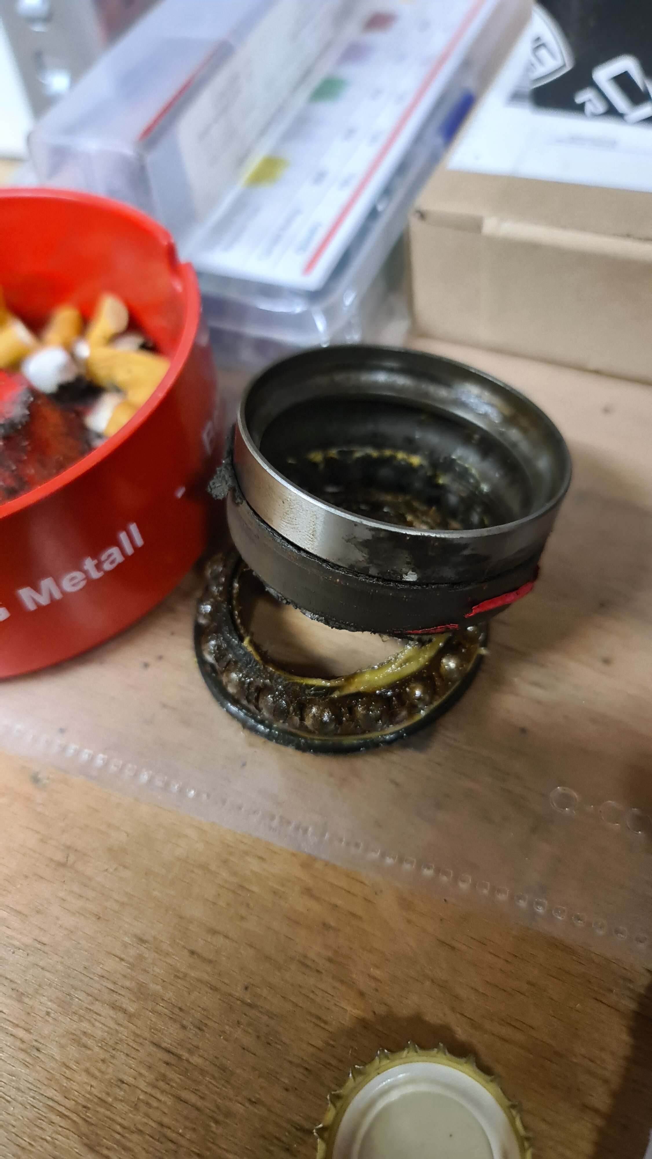 Luk950 Posted August 2, 2023 Author Share Posted August 2, 2023 (edited) Am 26.7.2023 um 17:14 schrieb mabou950: @Luk950 Unabhängig vom Lagertyp würde mich interessieren: Kannst du denn sagen, was innerhalb der 10oookm mit deiner Hyper betrieben wurde? Wheelies, Winterfahrt(Salz), Regen, Druckreiniger und viel Waschen, Rennstrecke? Und - wie schauen deine verschlissenen Lager überhaupt aus? Also hab die Hyper mit 9000km gekauft in einem absoluten top Zustand, die Hyper wurde laut Verkäufer auch nur per Hand gewaschen ( glaub ich ihm auch ). Ja wheelies hab ich natürlich in der Zeit meines Besitzes schon ein paar gemacht, denke das dürfte aber trotzdem kein Grund sein das die Lager so schnell kaputt gehen. Also egal was andere sagen, aber meiner Meinung nach darf das nicht nach 10tkm passieren. Hab die Lager jetzt auch schon ausgebaut, das obere Lager war nicht ganz so schlecht. Aber das untere Katastrophe, fast kein Fett mehr in den Lagern und viel Dreck Staub etc...., meine hat aber auch schon diese Staubkappe montiert. Eingebaut hab ich jetzt KOYO 32907-JR2 Kegelrollenlager. Diese hatten nach dem Einbau ohne sie einzustellen schon weniger Spiel als die Originalen. Hoffe diese halten länger. Edited August 2, 2023 by Luk950 1 Quote Link to comment Share on other sites More sharing options...