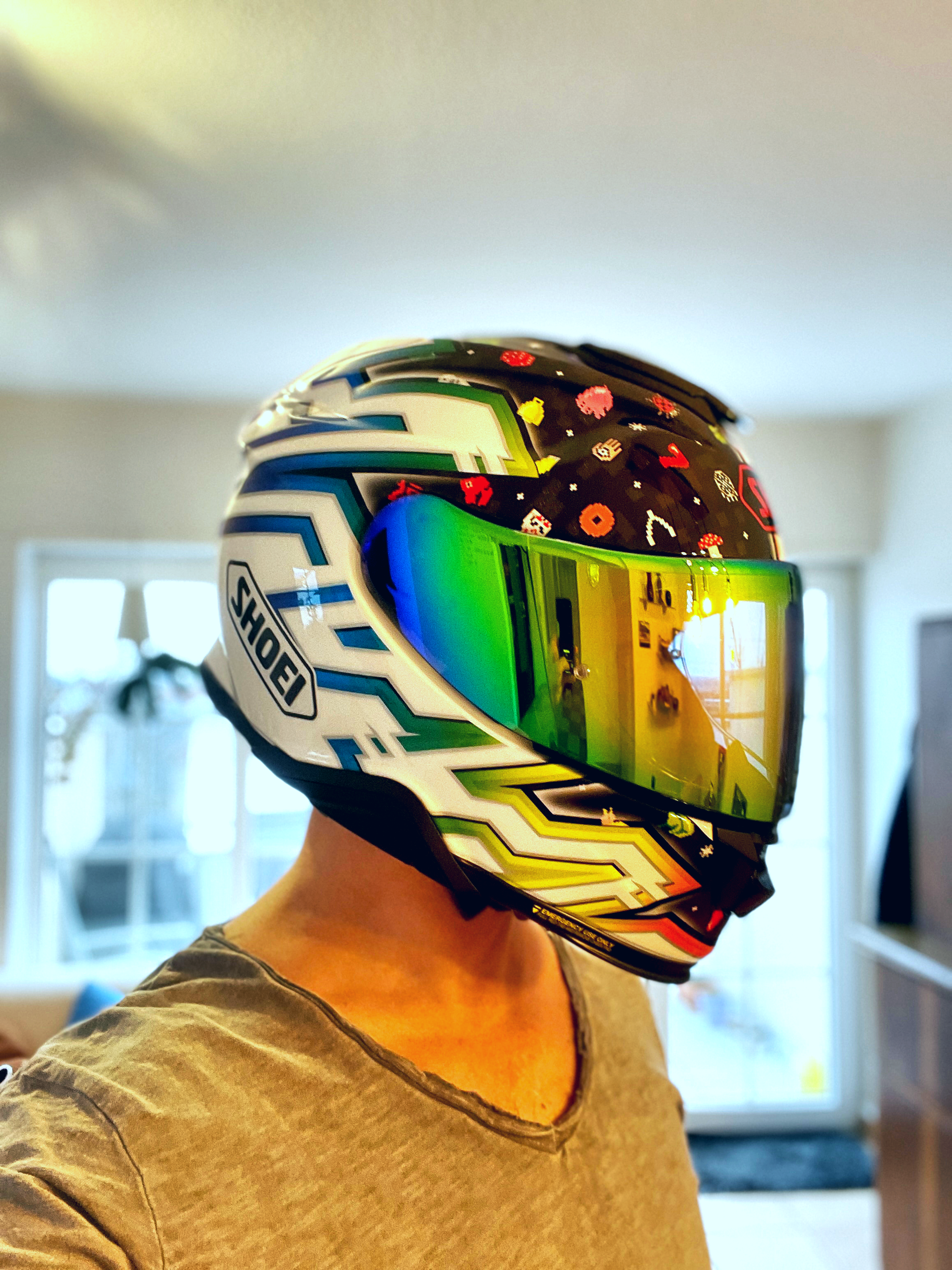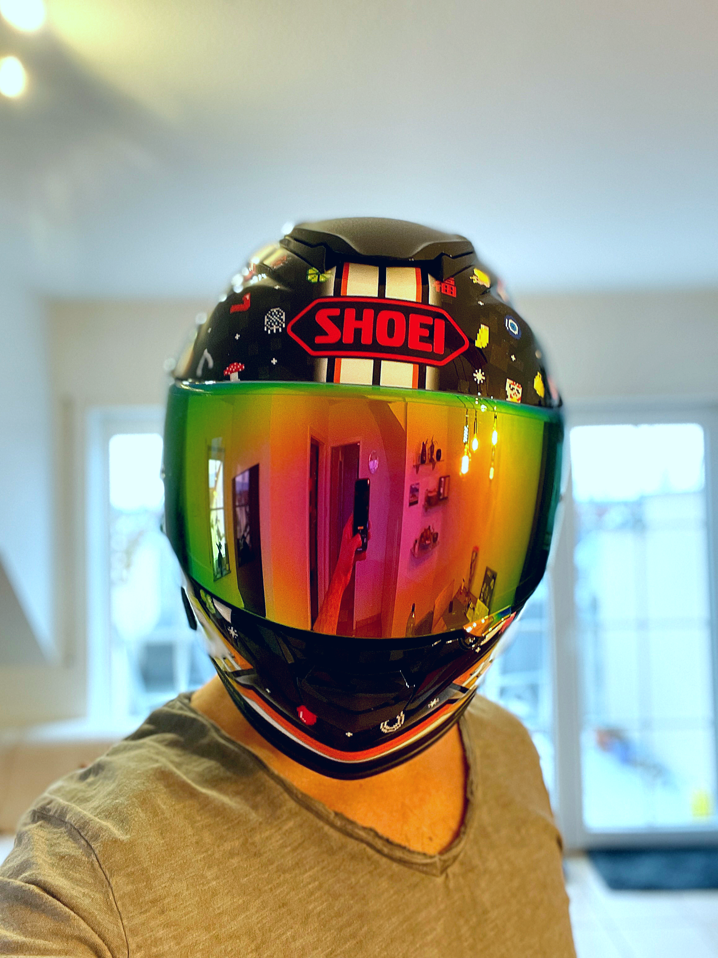 Darkside Posted March 11, 2021 Share Posted March 11, 2021 Die Tage werden wieder länger. Somit hab ich mir mal ein Rainbowfire verspiegeltes Visier samt Pinlockscheibe für meinen Shoei GT-Air 2 geholt. Farblich passt das Teil Weltklasse zum Helm und sehr dunkel ist es auch nicht. Zumindest ist es heller als das klappbare Innenvisier. 2 Quote Link to comment Share on other sites More sharing options...